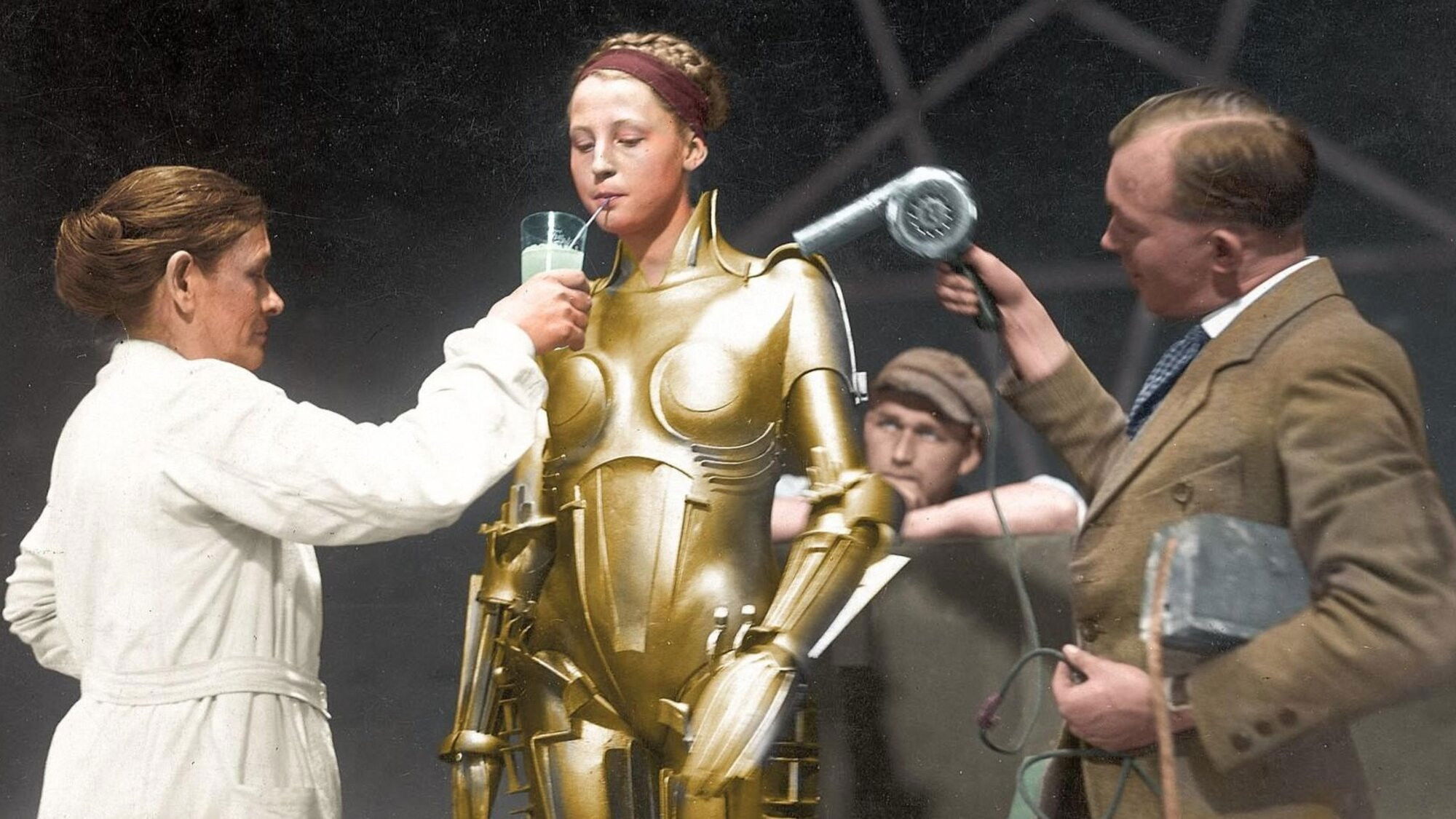 • Костюм робота (несправжньої Марії) був виготовлений архітектором Вальтером Шульце-Міттендорфом зі спеціального пластику, який швидко твердів на повітрі; до застигання з нього можна було ліпити все, що завгодно, спаювати, згинати та розпрямляти. Акторці Брігітте Гельм довелося полежати певний час у гіпсовій формі, щоб костюм «механічної людини» в точності повторював обриси її тіла. Костюм був розбірним, приблизно як лицарські обладунки.