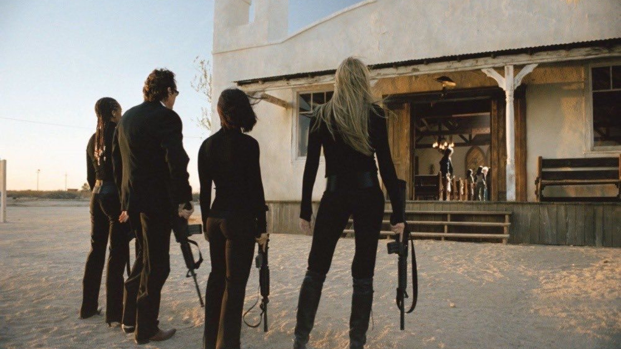 • Коли детективи заходять до церкви, можна почути, що хтось налаштовує радіо на потрібну станцію: перед тим як буде зроблено остаточний вибір, грає «Dónde Estás». У «Шалених псах» (1991) в сцені тортур містер Блондин також шукає відповідну радіостанцію, і перед тим як зупинити свій вибір на «K-BILLY», грає «Dónde Estás».