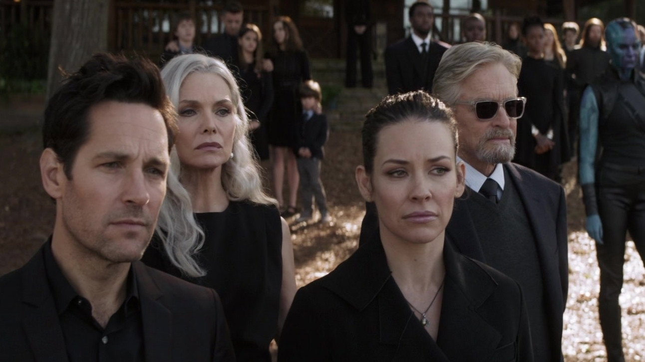• На похоронах Тоні Старка можна помітити підлітка, який стоїть позаду персонажів у виконанні Елізабет Олсен і Себастіана Стена. Це Харлі Кінер у виконанні Тая Сімпкінса, саме у нього Старк ремонтував свій супергеройський костюм у фантастичному бойовику Шейна Блека «Залізна людина 3» (2013).