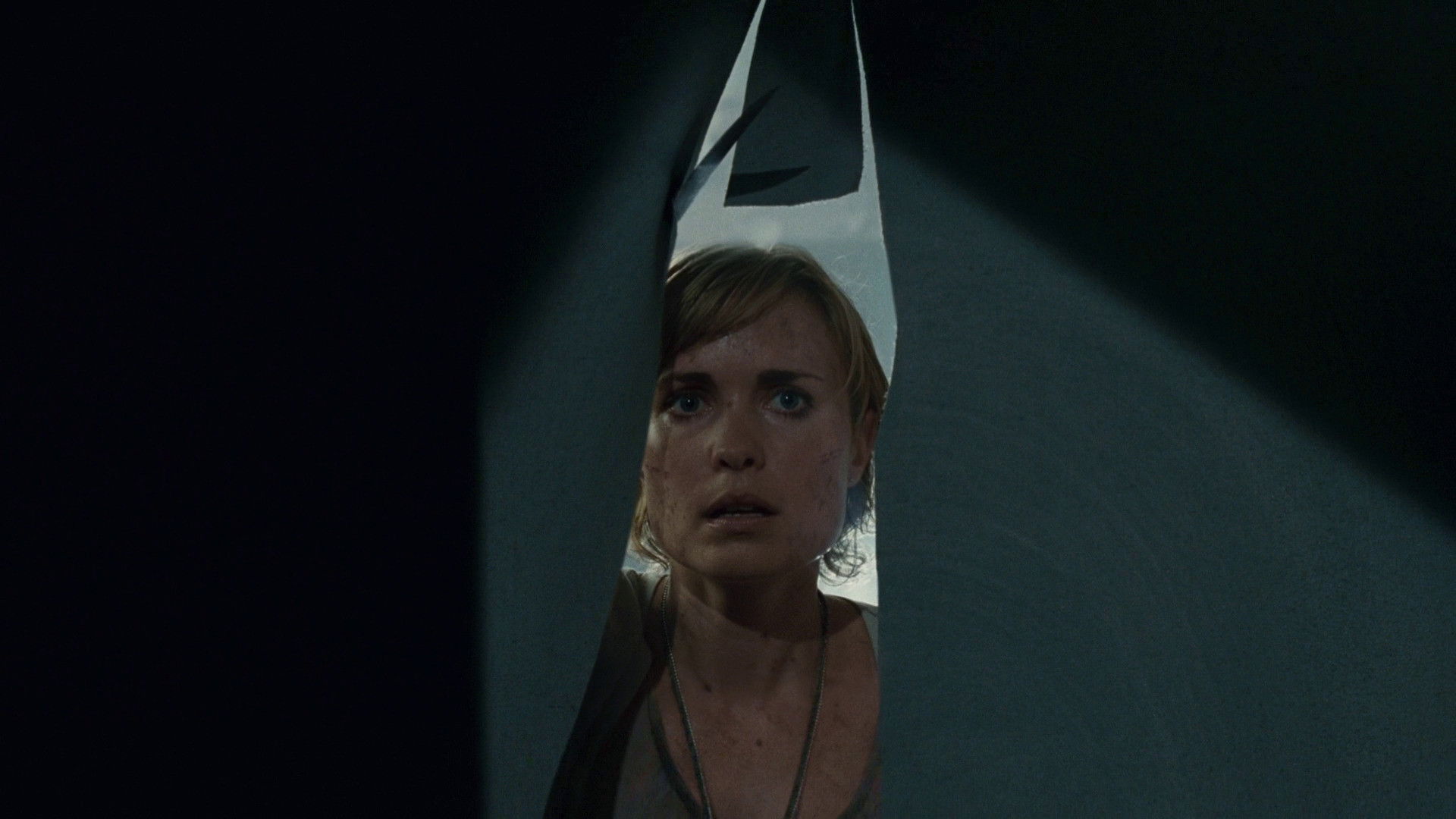 • Коли Роуз повертається до свого джипа, щоб взяти телефон, вона простягає руку до телефону, який лежить у центральній консолі автомобіля. У наступному кадрі шнурок від телефону вже на її шиї.