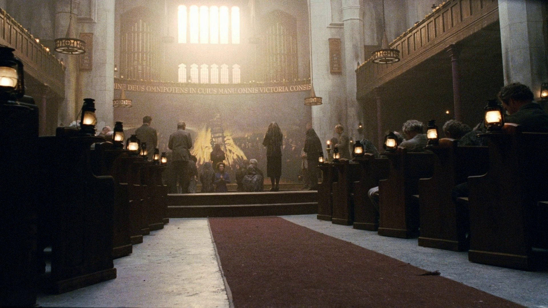 • У фінальній сцені, коли парафіяни зібралися разом, видно фразу, написану латинською мовою по всій стелі основного приміщення. Вона говорить: «Domine Deus Omnipotens in Cuius Manu Omnis Victoria Consistit...», що перекладається як «Господь Бог Всемогутній, в руках якого вся перемога». Це частина старої англійської молитви, яка відноситься до періоду, що передував нормандському завоюванню. Решта – «…а війна руйнується, даруй мені сили та наділи силою моє серце, щоб я міг боротися та здійснювати діяння сміливі, щоб мої вороги пали перед моїм поглядом».