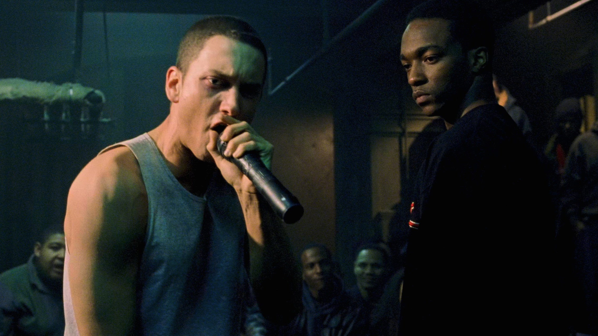 • Зйомки реп-баттлів займали цілі дні, і 300 акторів масовки почали нудьгувати. Режисер Кертіс Гансон організував серед них імпровізаційні реп-баттли з обіцянкою зняти трьох переможців у фільмі суперниками з Емінемом. Сформували журі, і кожному з 134 добровольців-учасників дали 15 секунд на виступ. Зрештою журі обрало чотирьох учасників для короткої зйомки з Емінемом. Передбачалося, що він лише робитиме вигляд, що бере участь у реп-баттлі проти них, щоб зберегти голос, але публіка почала його підбурювати, і він не зміг мовчати.