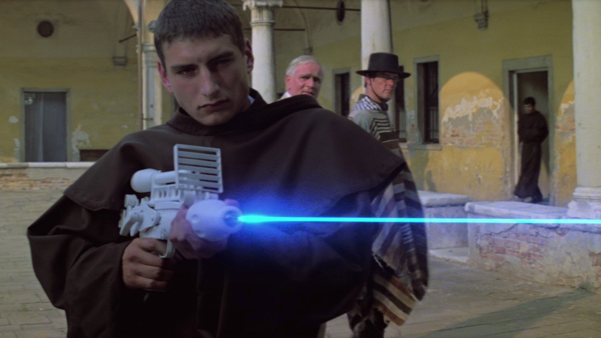 • Коли Бонд, одягнений у пончо, скаче на коні в бразильську резиденцію MI6, розташовану в монастирі, за кадром звучить головна тема з «Величного сімки».