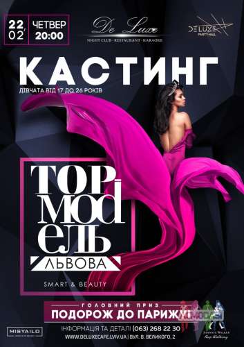 КАСТИНГ TOP MОDЕЛЬ ЛЬВОВА-2018! Головний приз - ПОДОРОЖ У ПАРИЖ! Якщо тобі від 17 до 26 років! Ти маєш бажання проявити себе та реалізувати свою давню мрію! ПРИХОДЬ НА КАСТИНГ! ...