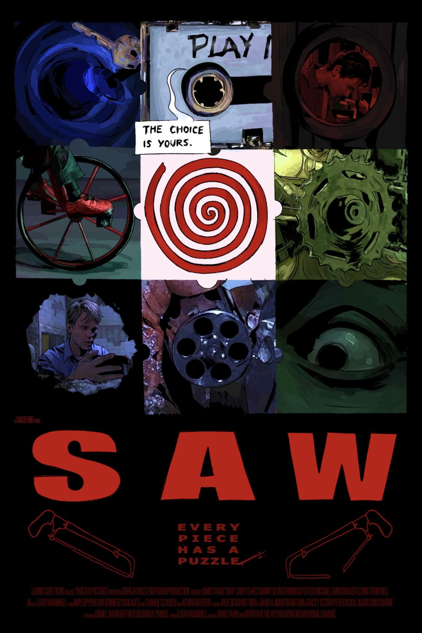 Багато постерів, обкладинок та шпалер до фільму "Пила"